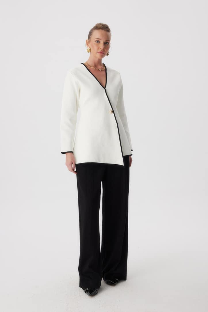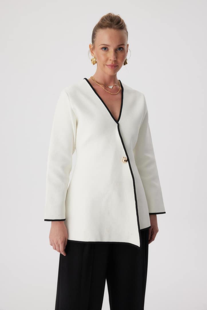 Bestel dit witte asymmetrische vest en maak je outfit compleet.