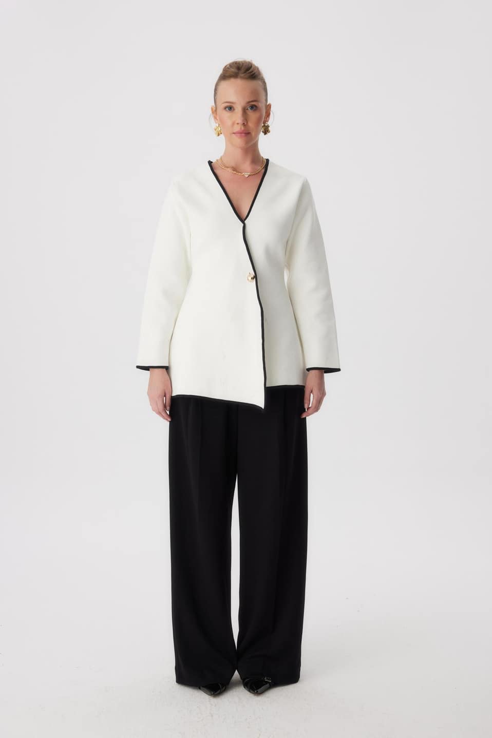 Ontdek ook het Asymmetrisch Vest Zwart voor een tijdloze en makkelijk te combineren look.
