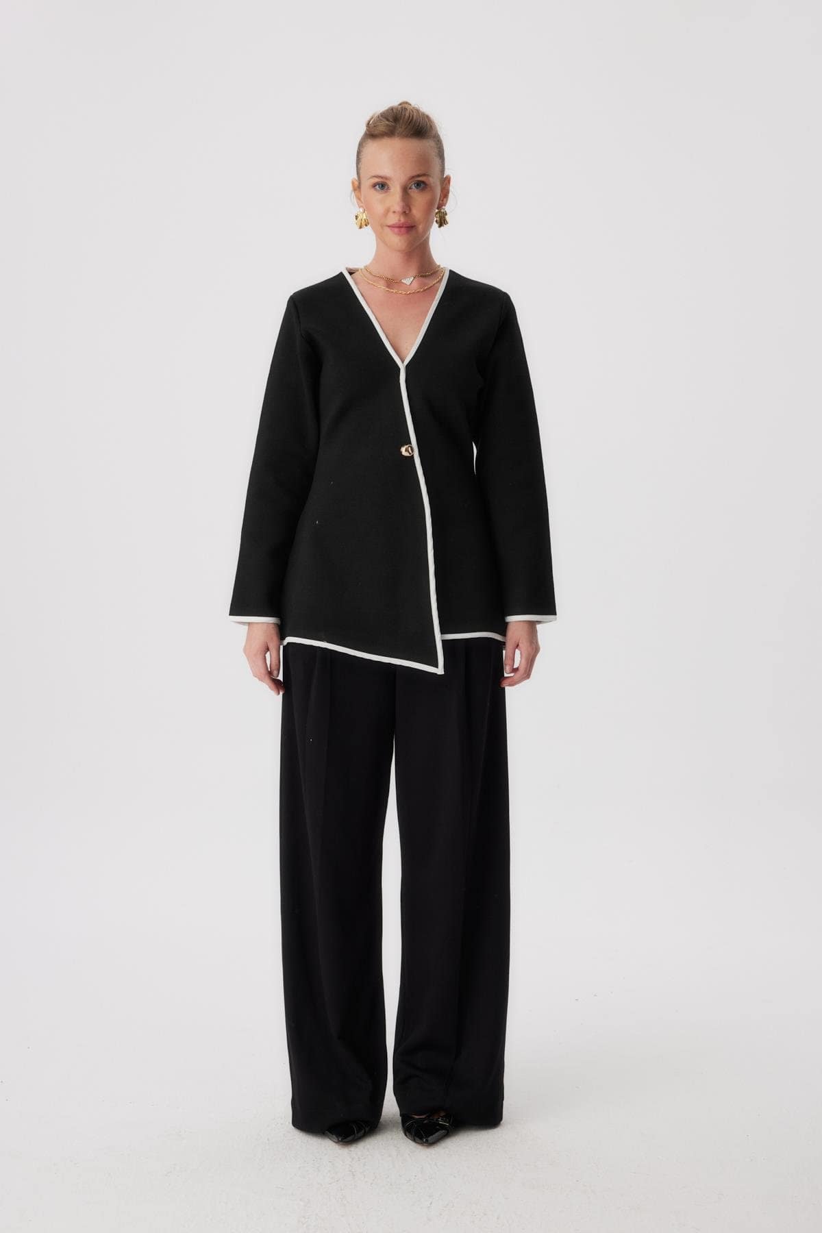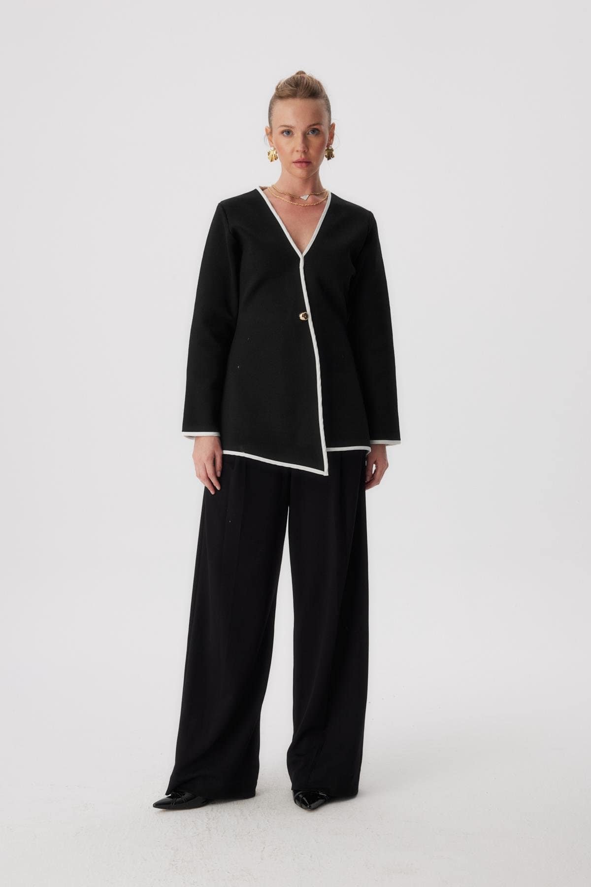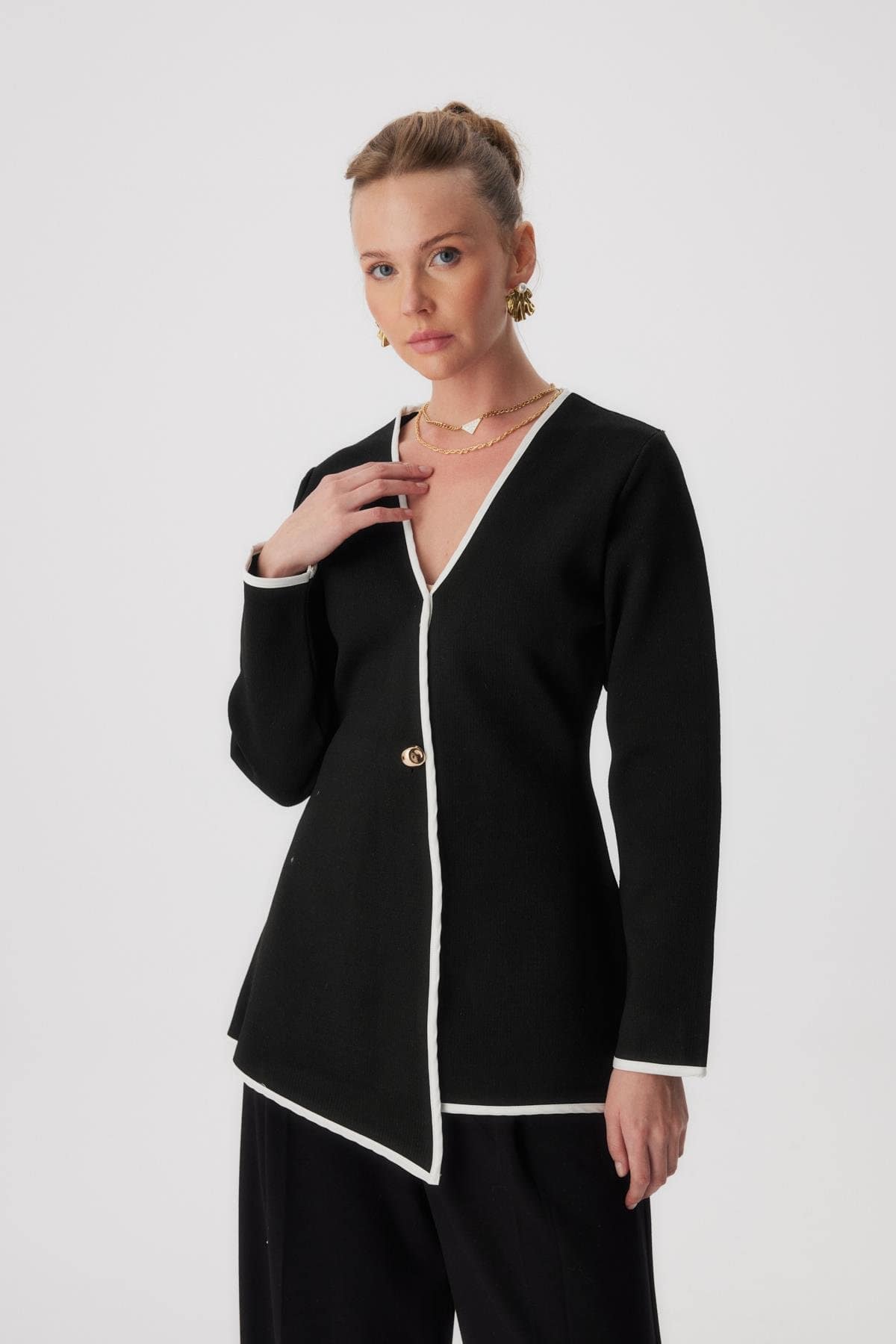 Het asymmetrische vest in zwart combineert een moderne snit met een tijdloze kleur. Het vest geeft elke outfit direct een stijlvolle upgrade en past perfect binnen een bescheiden look.