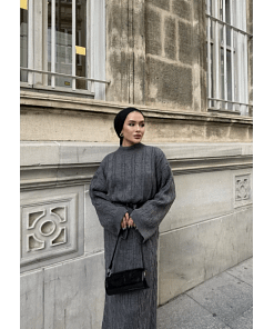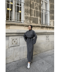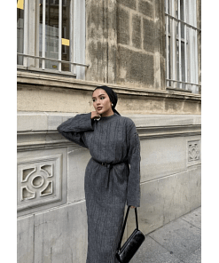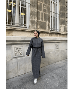 De antraciet gebreide maxi jurk is een elegante en praktische keuze voor vrouwen die houden van modest en tijdloze fashion. De zachte, gebreide stof voelt comfortabel aan en houdt je warm in koelere seizoenen. De maxi-lengte en bescheiden snit zorgen voor een stijlvolle uitstraling, geschikt voor werk, casual of feestelijke gelegenheden.