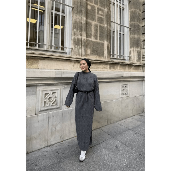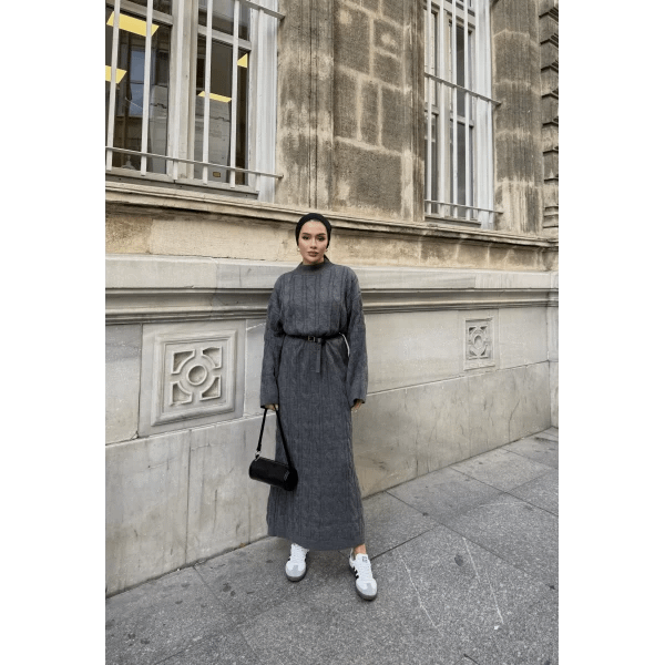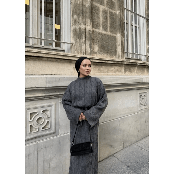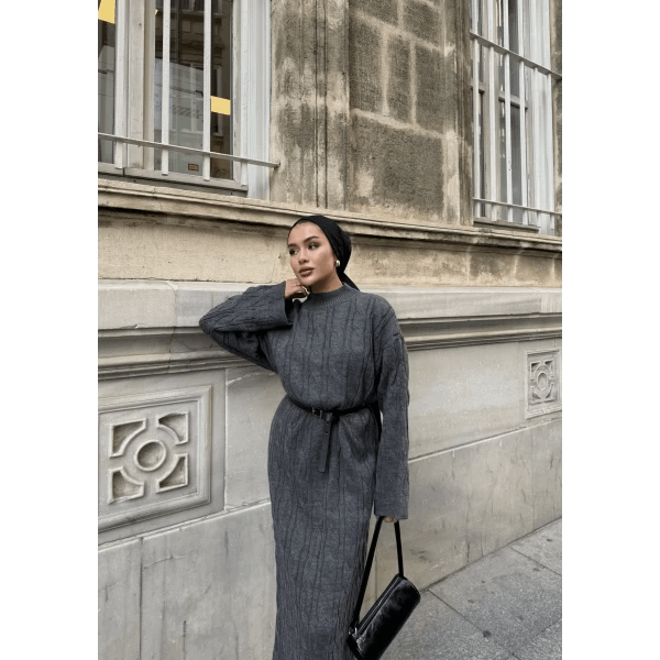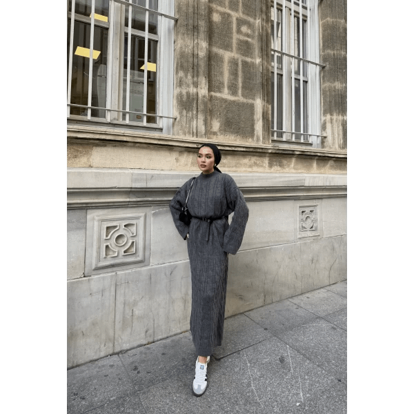 De antraciet gebreide maxi jurk is een elegante en praktische keuze voor vrouwen die houden van modest en tijdloze fashion. De zachte, gebreide stof voelt comfortabel aan en houdt je warm in koelere seizoenen. De maxi-lengte en bescheiden snit zorgen voor een stijlvolle uitstraling, geschikt voor werk, casual of feestelijke gelegenheden.