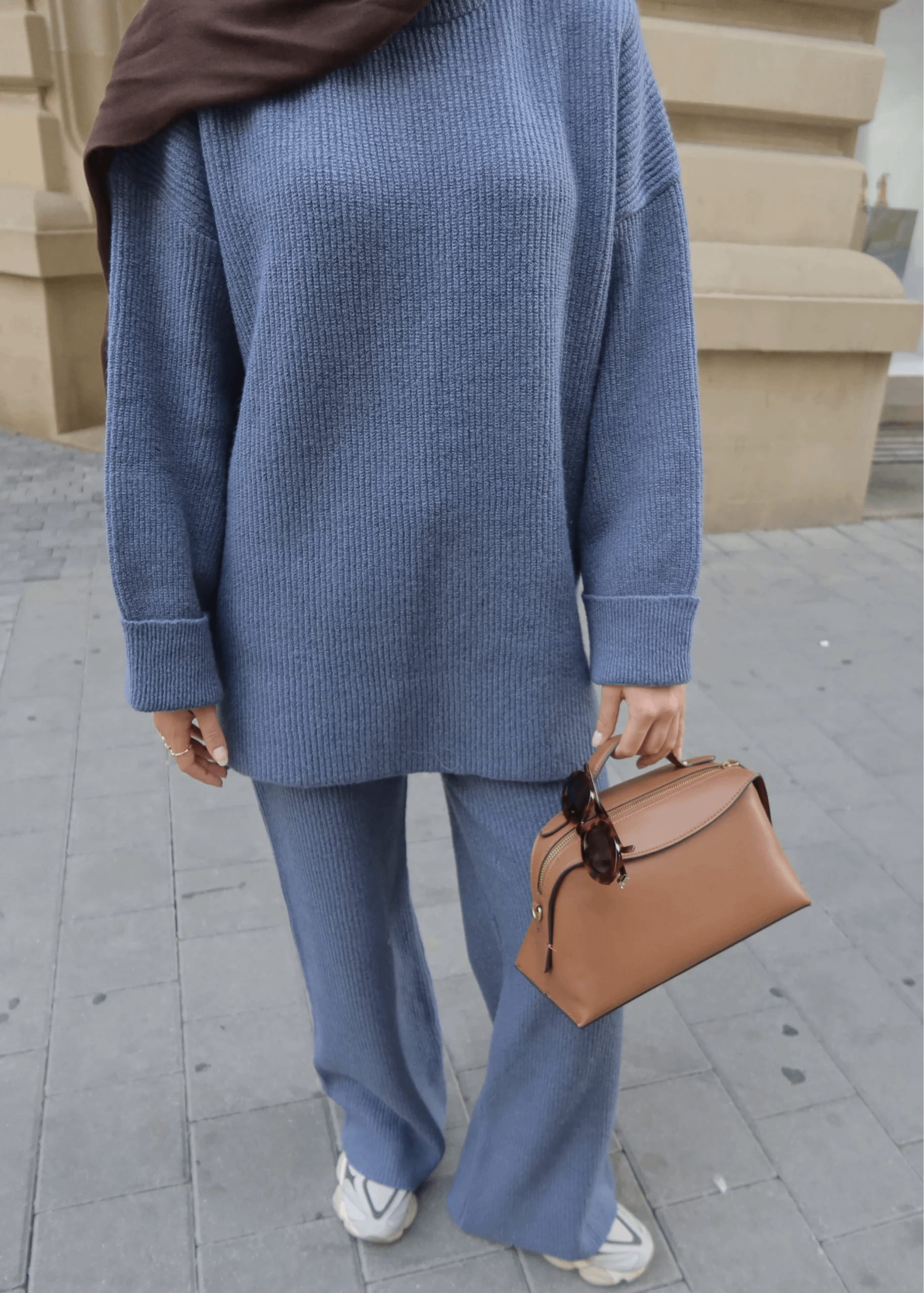 Onze gebreide twinset in blauw biedt een stijlvolle en comfortabele optie voor dames die bescheiden maar modieus willen kleden. De set bestaat uit een zachte gebreide trui en een bijpassend vest, ontworpen voor optimale bewegingsvrijheid en draagcomfort.