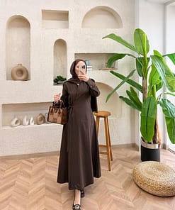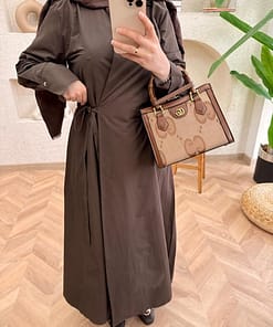 Het strikdetail zorgt voor een vrouwelijke touch en een mooie pasvorm, terwijl de bescheiden snit perfect past binnen modest fashion. De bruine kleur is tijdloos en eenvoudig te combineren met neutrale tinten.