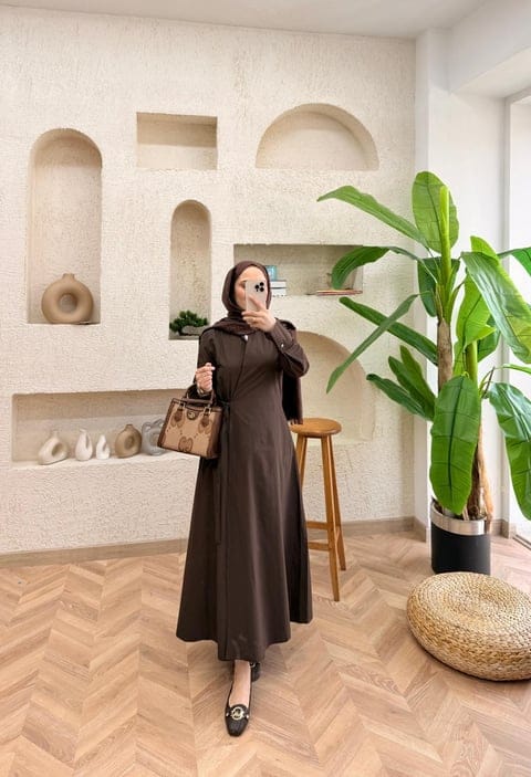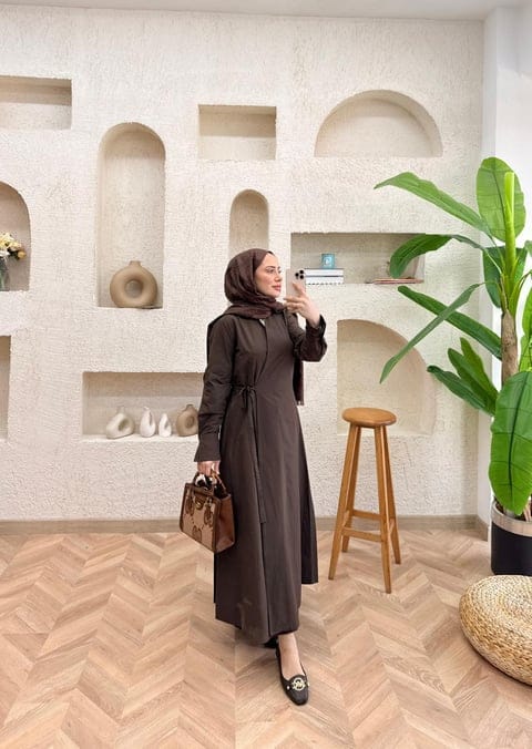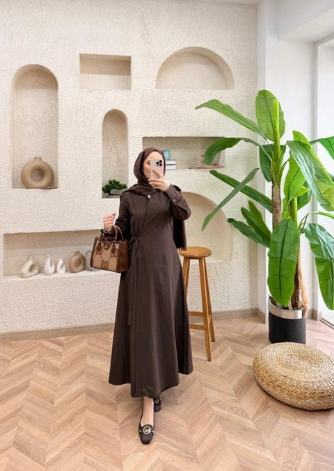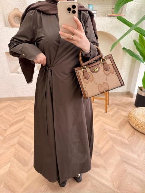 Het strikdetail zorgt voor een vrouwelijke touch en een mooie pasvorm, terwijl de bescheiden snit perfect past binnen modest fashion. De bruine kleur is tijdloos en eenvoudig te combineren met neutrale tinten.