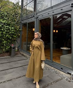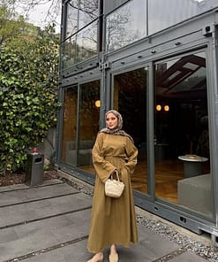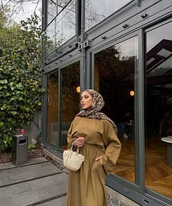 De linnen twinset in olijfgroen is een stijlvolle en tijdloze set die perfect past binnen een bescheiden garderobe. Het ademende linnen materiaal zorgt voor comfort, terwijl de natuurlijke kleur een rustige en elegante uitstraling geeft.