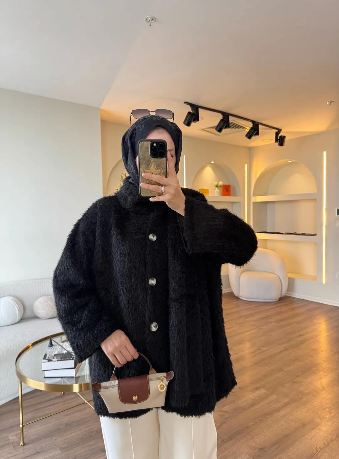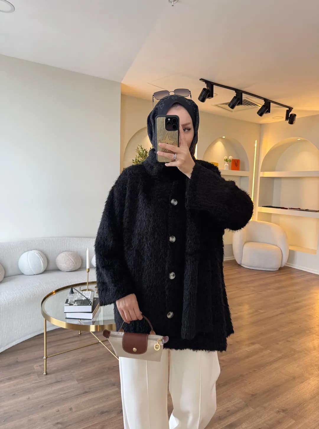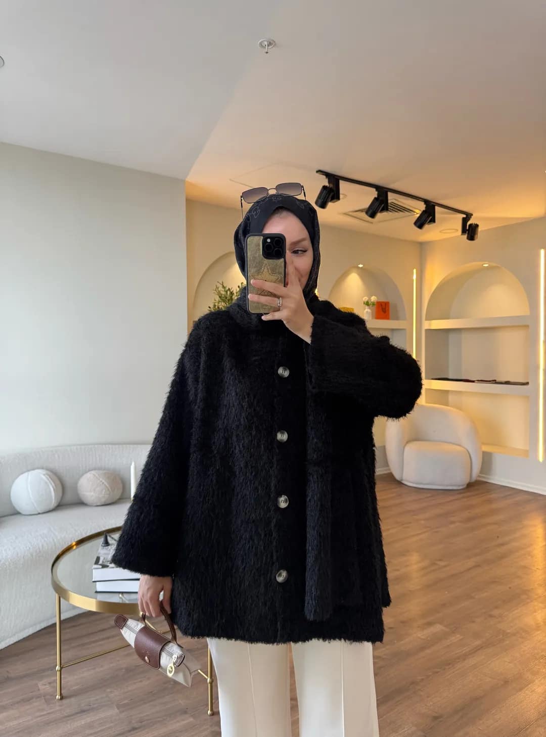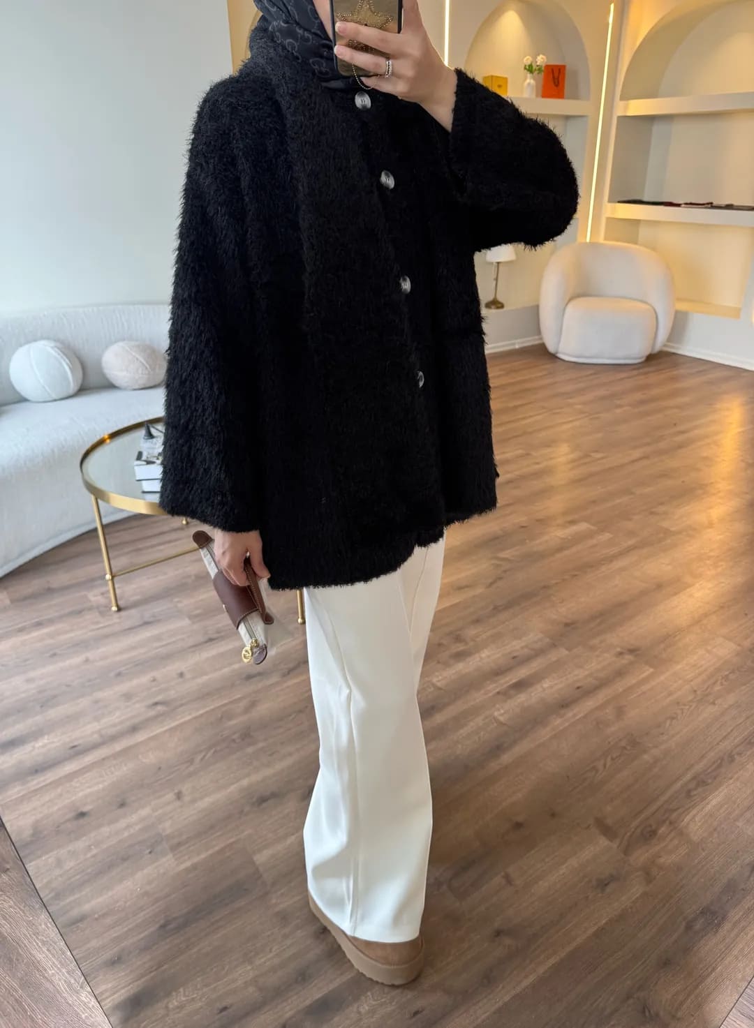 Pluche Vest Met Sjaal Zwart – Warm Modest Vest Dames