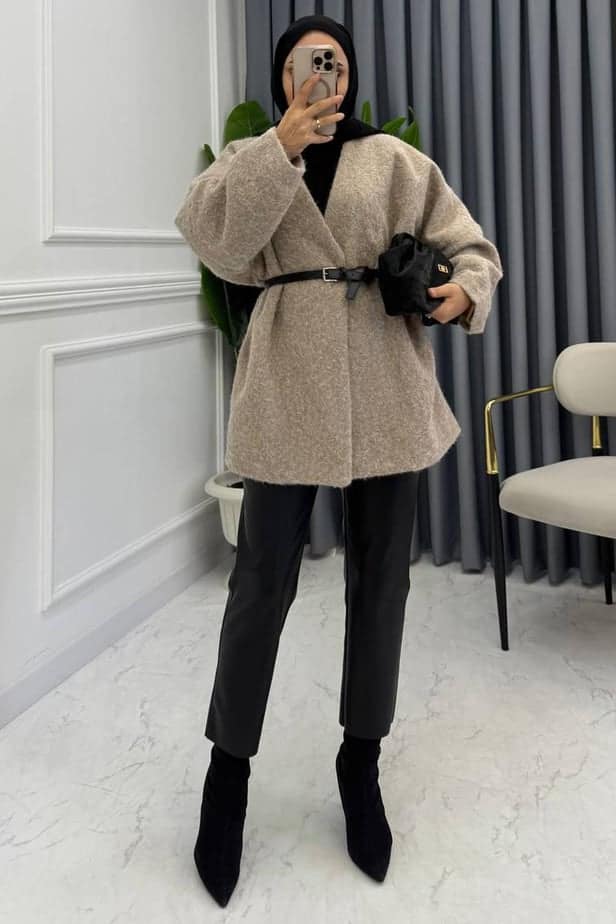 Onze taupe blazer met riem is een perfecte mix van stijl en bescheidenheid. De blazer is gemaakt van zacht, lichtgewicht materiaal en heeft een elegante, vrouwelijke pasvorm dankzij de bijpassende riem.